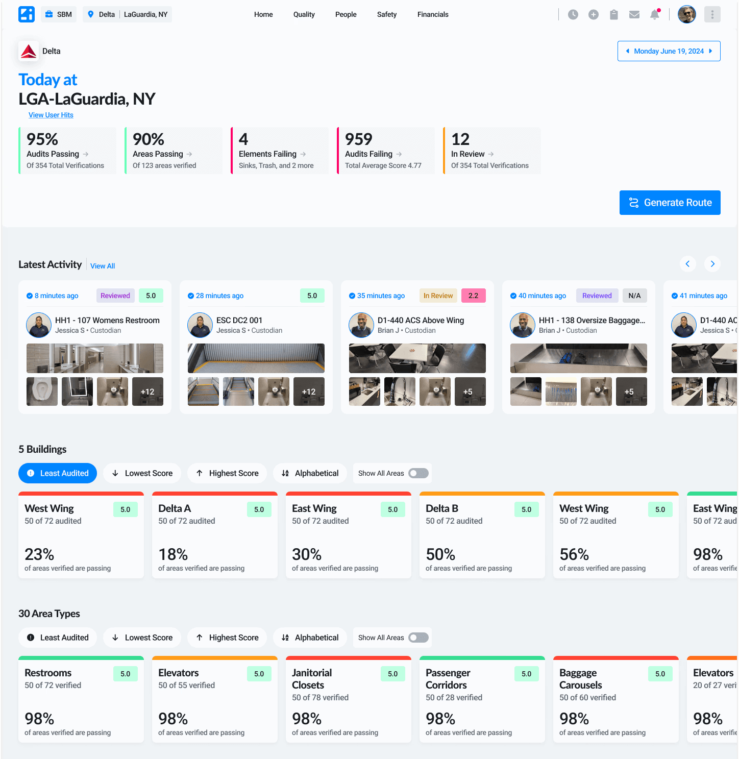 Area type cards showed patterns in what kinds of spaces were failing — supporting more strategic decisions.