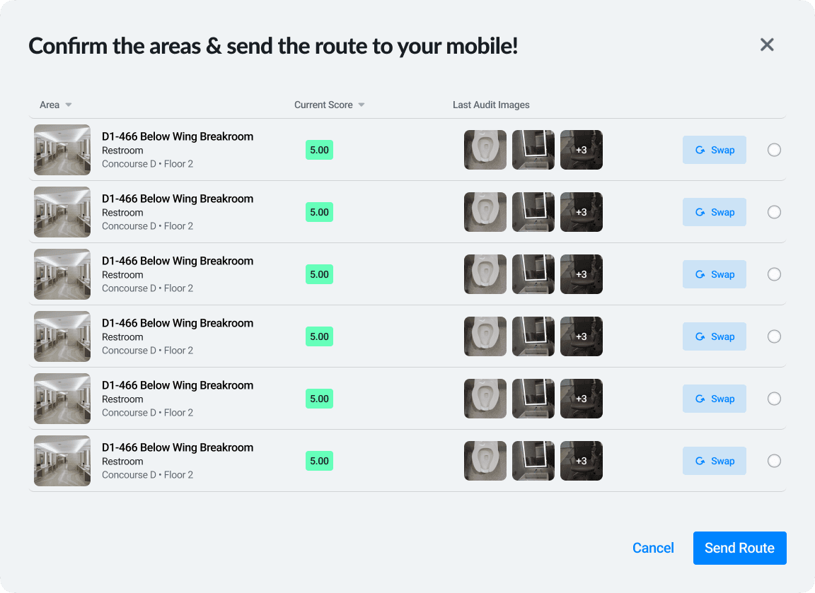 The system didn’t support sorting by risk, recent issues, or audit history — leaving managers to decide routes on the fly, often based on habit, urgency, or convenience.
