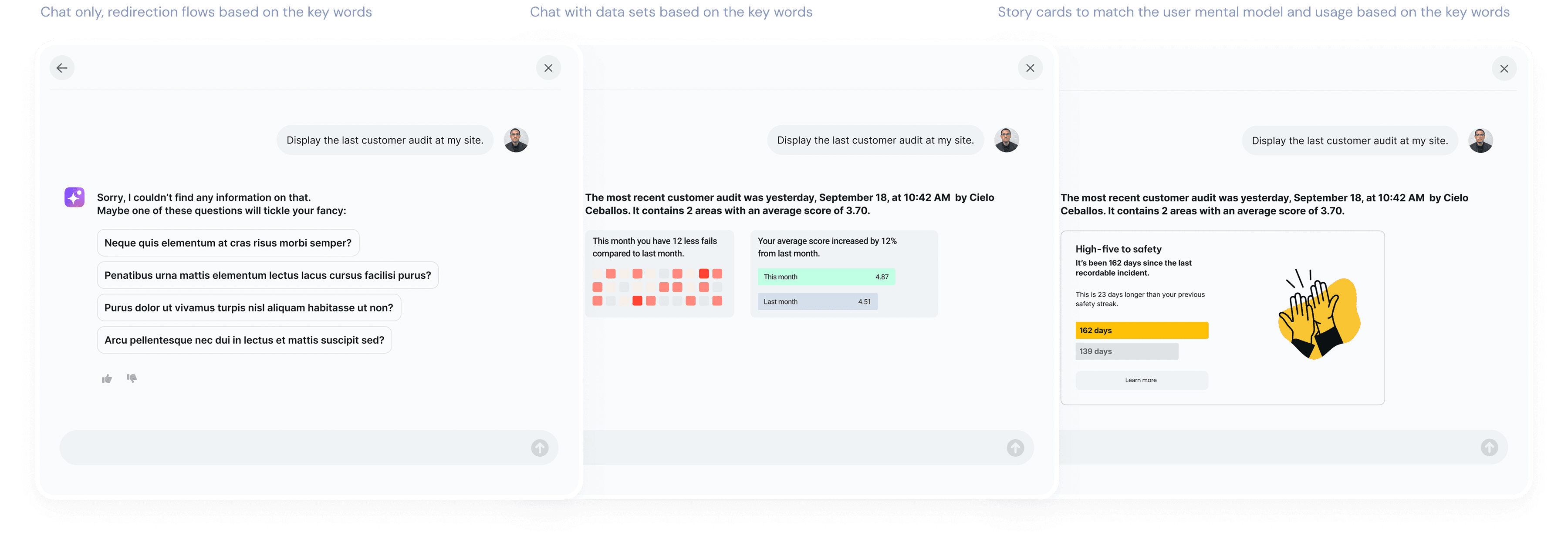 User behavior aligned with our constraints: the vast majority of managers relied on the same core data points. Their mental model (Trigger → Scenario → Decision) also fit within the limits of a free-form chat interface.